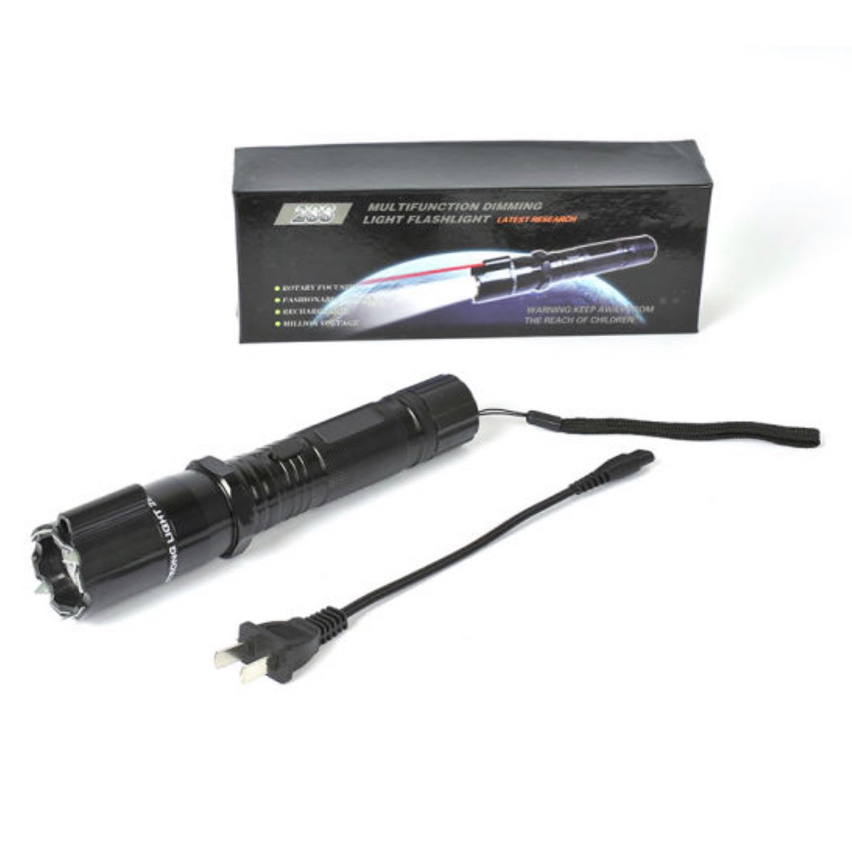 - Funkce: LED svítilna / elektrický paralyzér / červený laser
